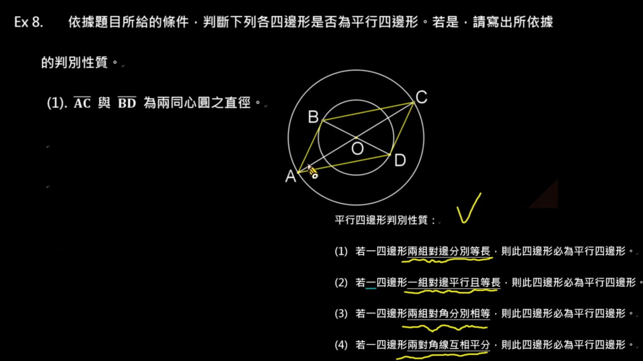 載入中... 相關課程 Back 【例題】利用同心圓直徑判別平行四邊形 相關課程 0 / 750 登入觀看 ⇐ Use this menu to view and help create subtitles for this video in many different languages. You'll probably want to hide YouTube's captions if using these subtitles. 【例題】利用同心圓直徑判別平行四邊形 上傳學習單 下載學習單