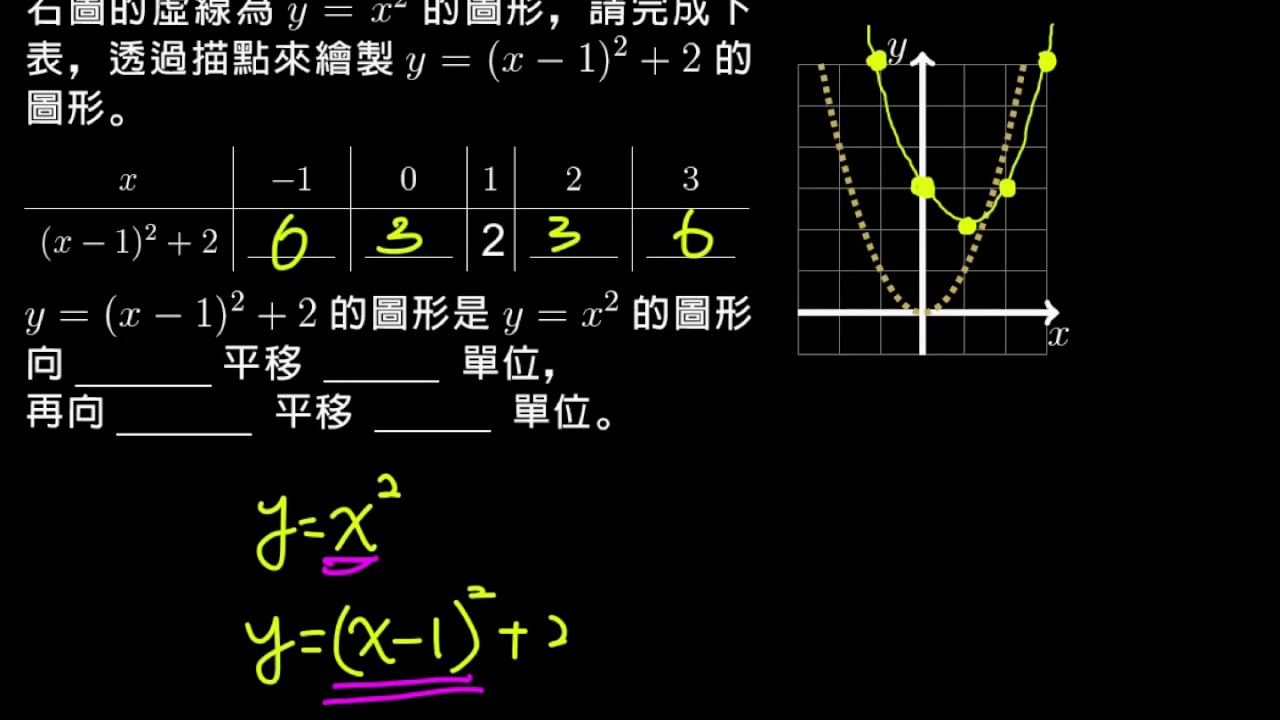載入中... 相關課程 Back 【例題】描繪 y= (x-1)^2+2 的圖形 相關課程 0 / 750 登入觀看 ⇐ Use this menu to view and help create subtitles for this video in many different languages. You'll probably want to hide YouTube's captions if using these subtitles. 【例題】描繪 y= (x-1)^2+2 的圖形 上傳學習單 下載學習單