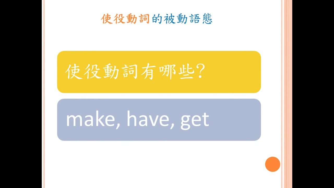 載入中... 相關課程 Back 詞類:被動語態 - 助動詞、感官動詞、使役動詞 相關課程 0 / 750 登入觀看 ⇐ Use this menu to view and help create subtitles for this video in many different languages. You'll probably want to hide YouTube's captions if using these subtitles. 詞類:被動語態 - 助動詞、感官動詞、使役動詞 上傳學習單 下載學習單