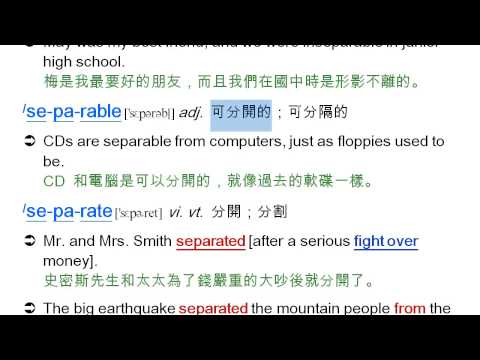 載入中... 相關課程 Back inseparable: 不可分開的, separate, 使分開, separable, 可分開的 相關課程 0 / 750 登入觀看 ⇐ Use this menu to view and help create subtitles for this video in many different languages. You'll probably want to hide YouTube's captions if using these subtitles. inseparable: 不可分開的, separate, 使分開, separable, 可分開的 上傳學習單 下載學習單