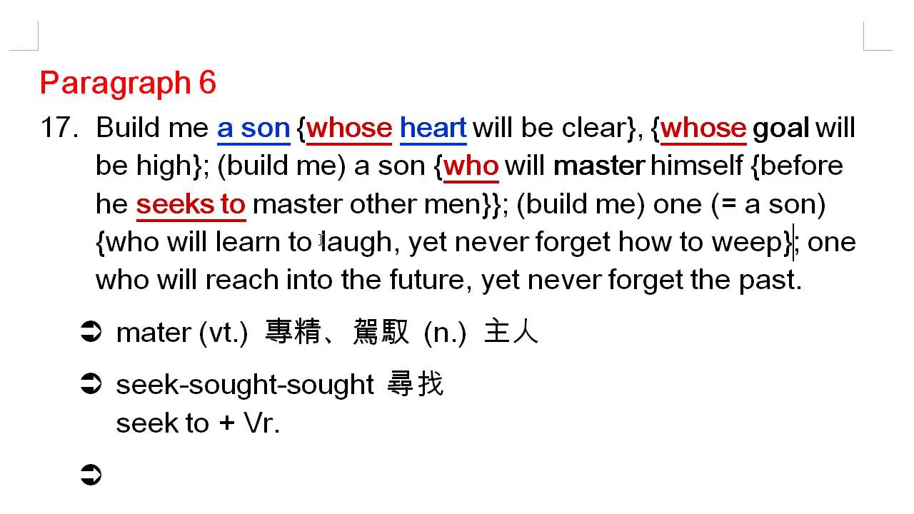 高中英文-龍騰版-Book 3 Lesson 4 A Father's Prayer - Paragraph 6