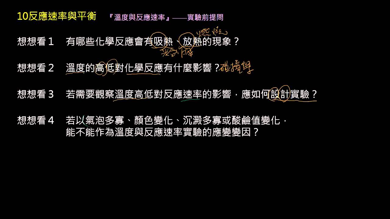 載入中... 相關課程 Back 【提問】溫度與反應速率 相關課程 0 / 750 登入觀看 ⇐ Use this menu to view and help create subtitles for this video in many different languages. You'll probably want to hide YouTube's captions if using these subtitles. 【提問】溫度與反應速率 上傳學習單 下載學習單