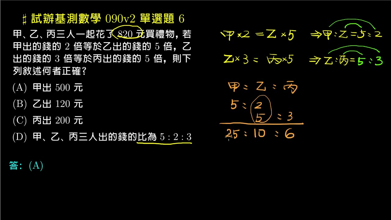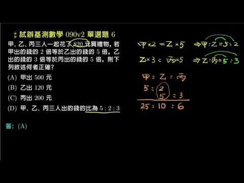 載入中... 相關課程 Back 【基測數學練習題本】90v2 單選06:連比例 相關課程 0 / 750 登入觀看 ⇐ Use this menu to view and help create subtitles for this video in many different languages. You'll probably want to hide YouTube's captions if using these subtitles. 【基測數學練習題本】90v2 單選06:連比例 上傳學習單 下載學習單