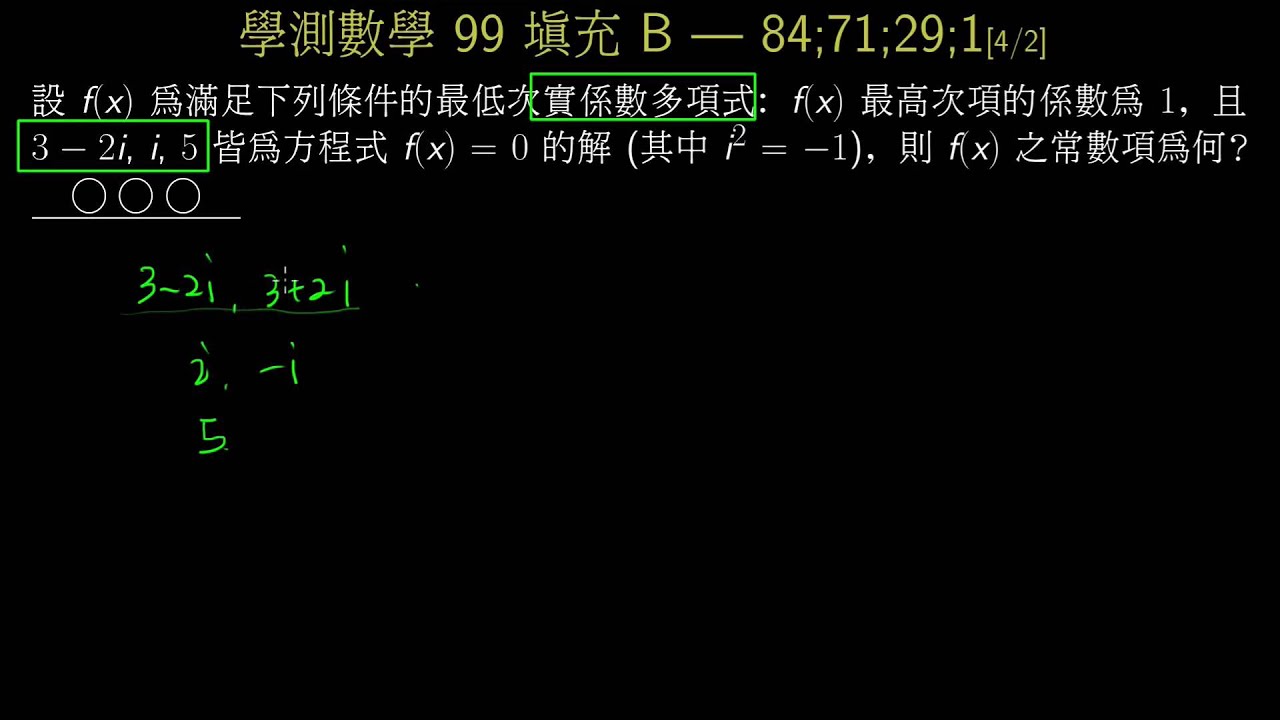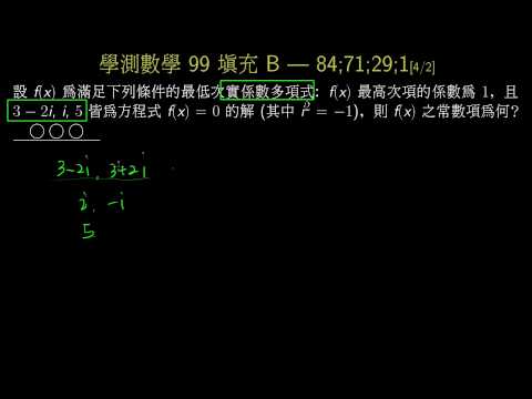 載入中... 相關課程 Back 學測數學99_填充B_給複數根求最小多項式 相關課程 0 / 750 登入觀看 ⇐ Use this menu to view and help create subtitles for this video in many different languages. You'll probably want to hide YouTube's captions if using these subtitles. 學測數學99_填充B_給複數根求最小多項式 上傳學習單 下載學習單