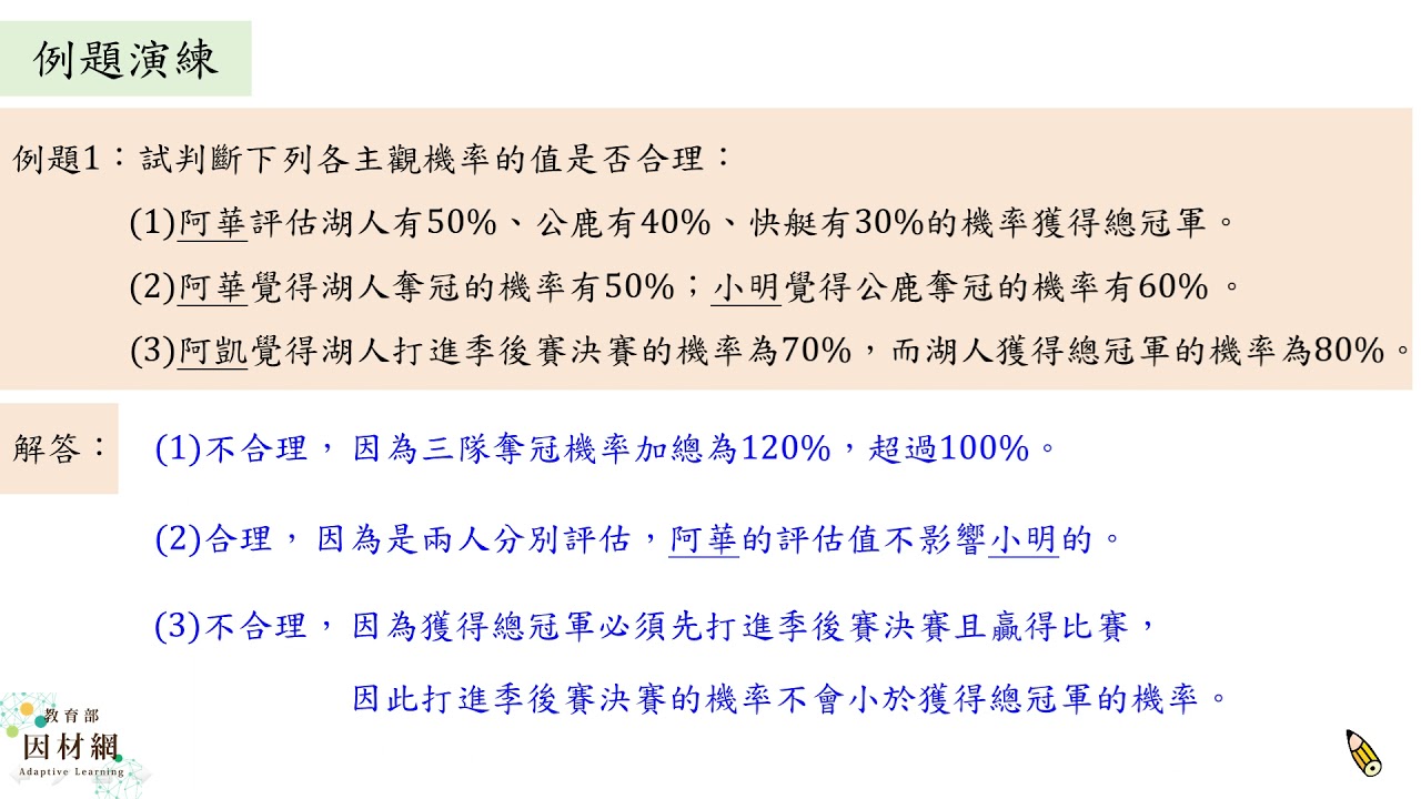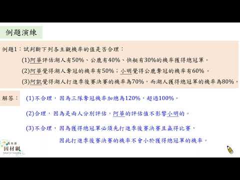 載入中... 相關課程 Back D-11B-1-S02_能理解主觀機率的意義與合理性,並能分辨古典機率、客觀機率和主觀機率的差別 相關課程 0 / 750 登入觀看 ⇐ Use this menu to view and help create subtitles for this video in many different languages. You'll probably want to hide YouTube's captions if using these subtitles. D-11B-1-S02_能理解主觀機率的意義與合理性,並能分辨古典機率、客觀機率和主觀機率的差別 上傳學習單 下載學習單