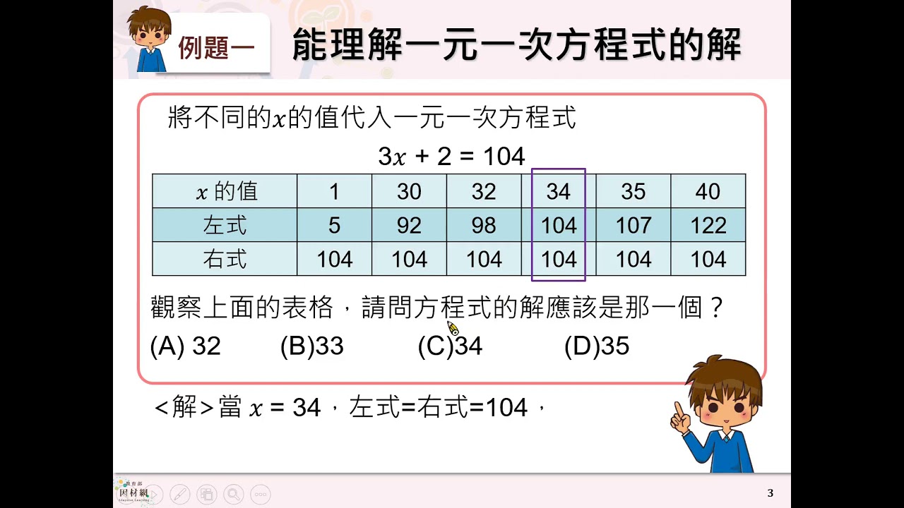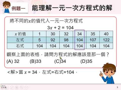 載入中... 相關課程 Back A-7-2-S02_能理解一元一次方程式及其解的意義。 相關課程 0 / 750 登入觀看 ⇐ Use this menu to view and help create subtitles for this video in many different languages. You'll probably want to hide YouTube's captions if using these subtitles. A-7-2-S02_能理解一元一次方程式及其解的意義。 上傳學習單 下載學習單