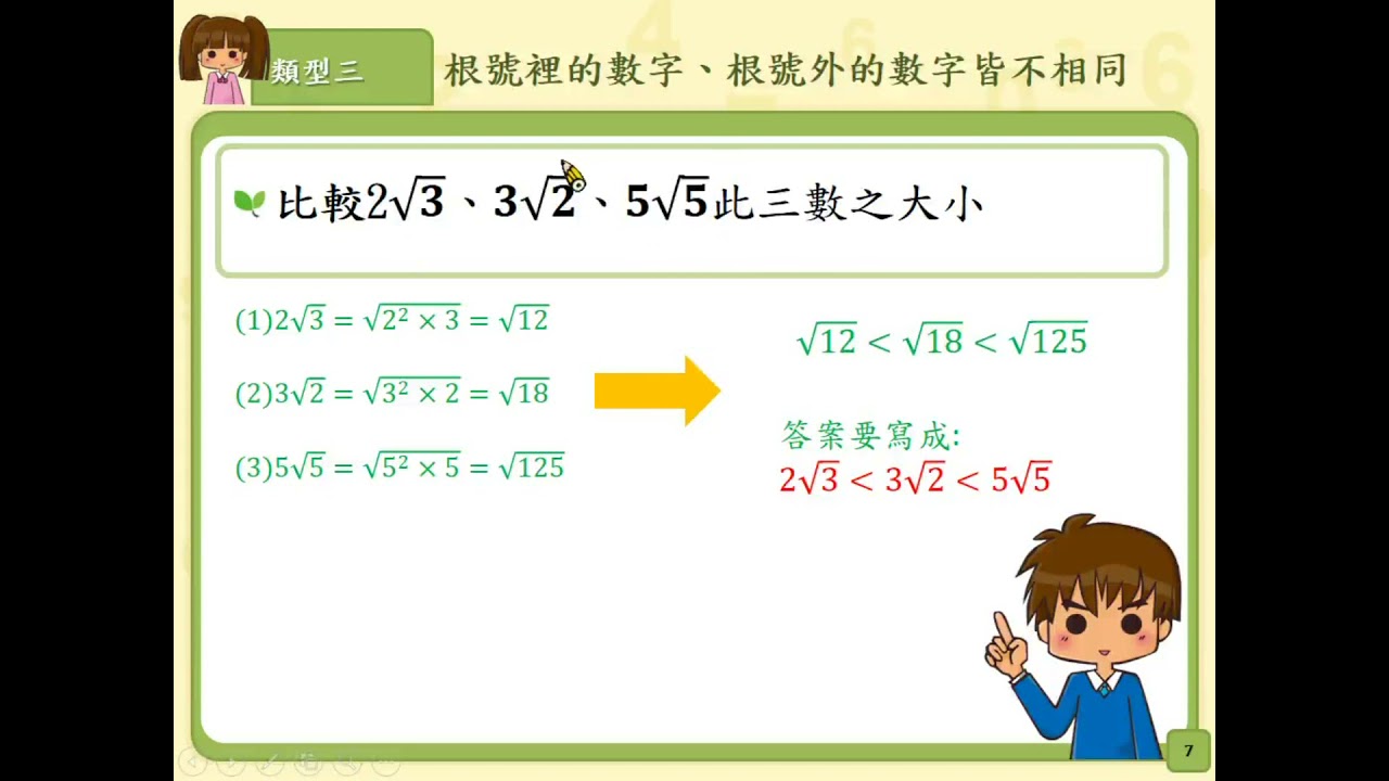 載入中... 相關課程 Back N-8-2-S03_比較根式的大小。 相關課程 0 / 750 登入觀看 ⇐ Use this menu to view and help create subtitles for this video in many different languages. You'll probably want to hide YouTube's captions if using these subtitles. N-8-2-S03_比較根式的大小。 上傳學習單 下載學習單