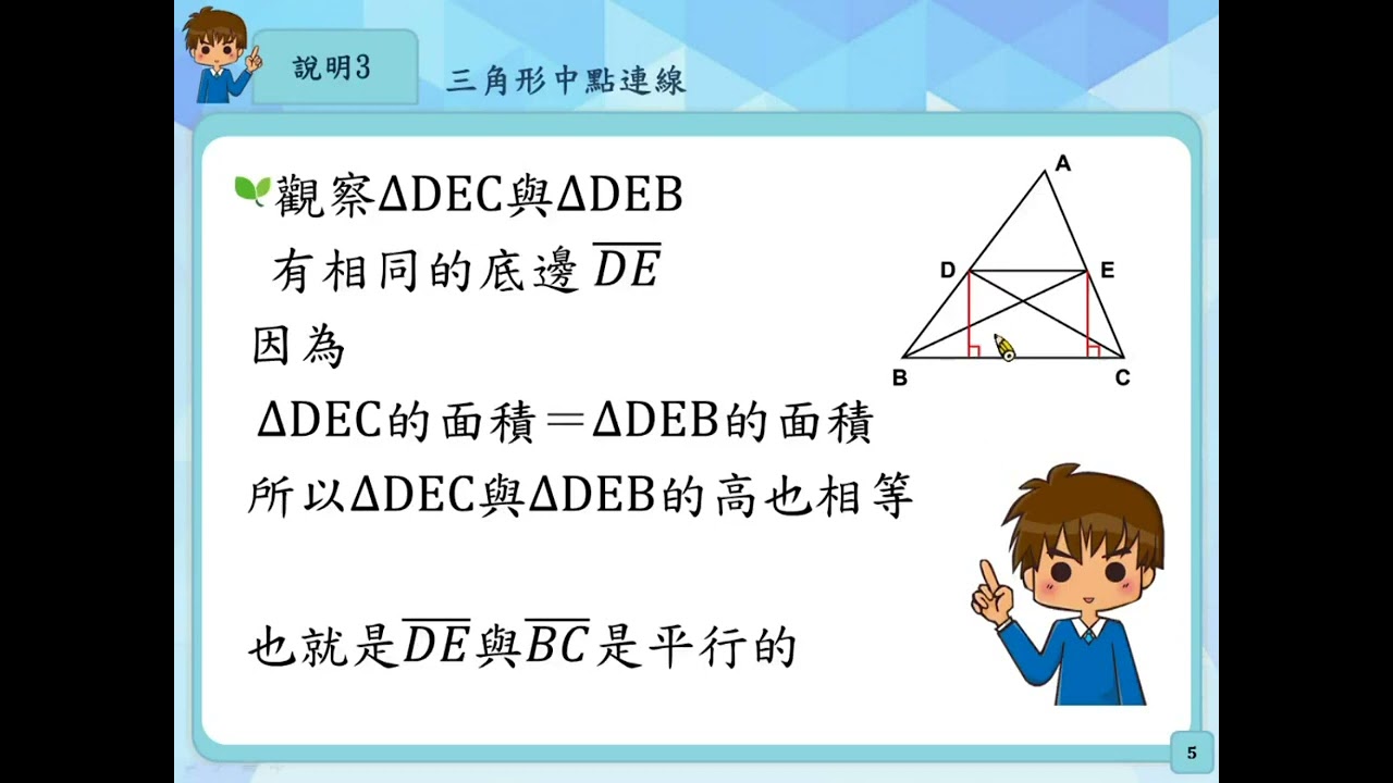 載入中... 相關課程 Back S-9-3-S01 能理解三角形任兩邊的中點連線必平行於第三邊,且此線段長為底邊長度的一半 相關課程 0 / 750 登入觀看 ⇐ Use this menu to view and help create subtitles for this video in many different languages. You'll probably want to hide YouTube's captions if using these subtitles. S-9-3-S01 能理解三角形任兩邊的中點連線必平行於第三邊,且此線段長為底邊長度的一半 上傳學習單 下載學習單