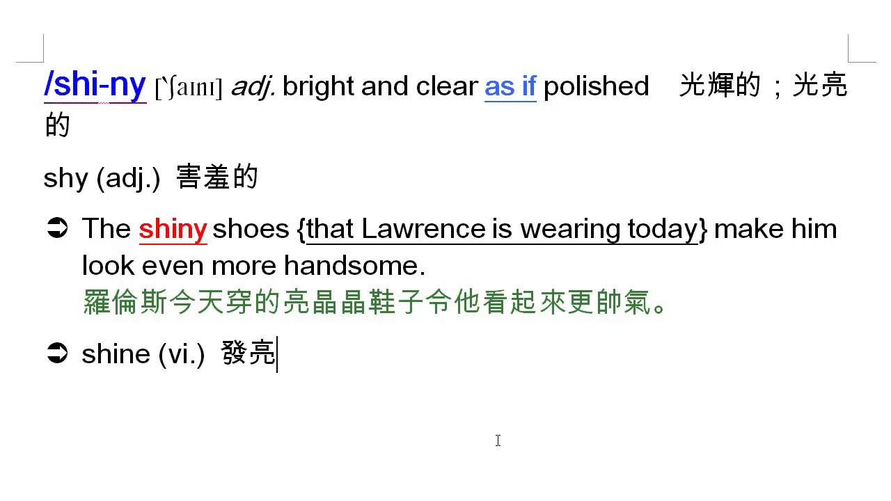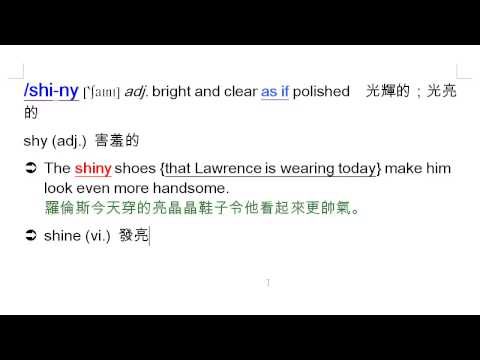 載入中... 相關課程 Back shiny: 光輝的, 光亮的, sunshine, 陽光, shine, shone, shined 相關課程 0 / 750 登入觀看 ⇐ Use this menu to view and help create subtitles for this video in many different languages. You'll probably want to hide YouTube's captions if using these subtitles. shiny: 光輝的, 光亮的, sunshine, 陽光, shine, shone, shined 上傳學習單 下載學習單