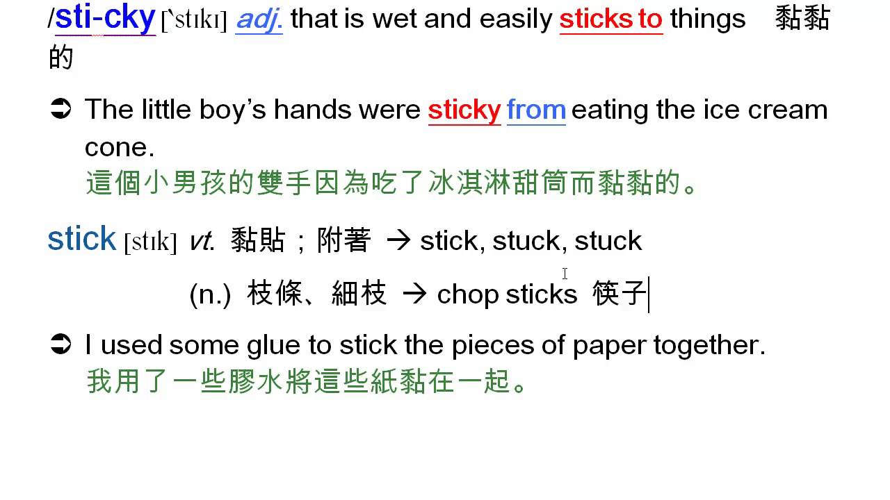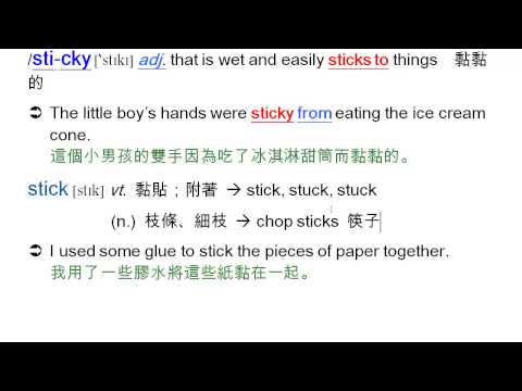 載入中... 相關課程 Back sticky: 黏黏的, stick, 黏住, sticker, 貼紙, stick to, 堅持 相關課程 0 / 750 登入觀看 ⇐ Use this menu to view and help create subtitles for this video in many different languages. You'll probably want to hide YouTube's captions if using these subtitles. sticky: 黏黏的, stick, 黏住, sticker, 貼紙, stick to, 堅持 上傳學習單 下載學習單