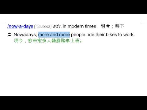 載入中... 相關課程 Back nowadays: 現今, 當下, more and more, 越來越多 相關課程 0 / 750 登入觀看 ⇐ Use this menu to view and help create subtitles for this video in many different languages. You'll probably want to hide YouTube's captions if using these subtitles. nowadays: 現今, 當下, more and more, 越來越多 上傳學習單 下載學習單