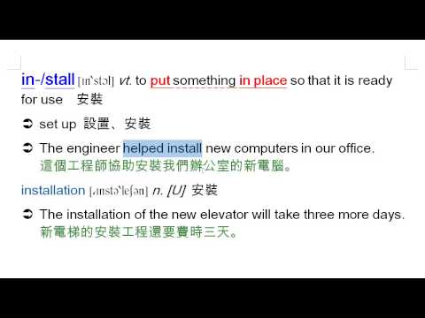載入中... 相關課程 Back install: 安裝, set up, installation 相關課程 0 / 750 登入觀看 ⇐ Use this menu to view and help create subtitles for this video in many different languages. You'll probably want to hide YouTube's captions if using these subtitles. install: 安裝, set up, installation 上傳學習單 下載學習單