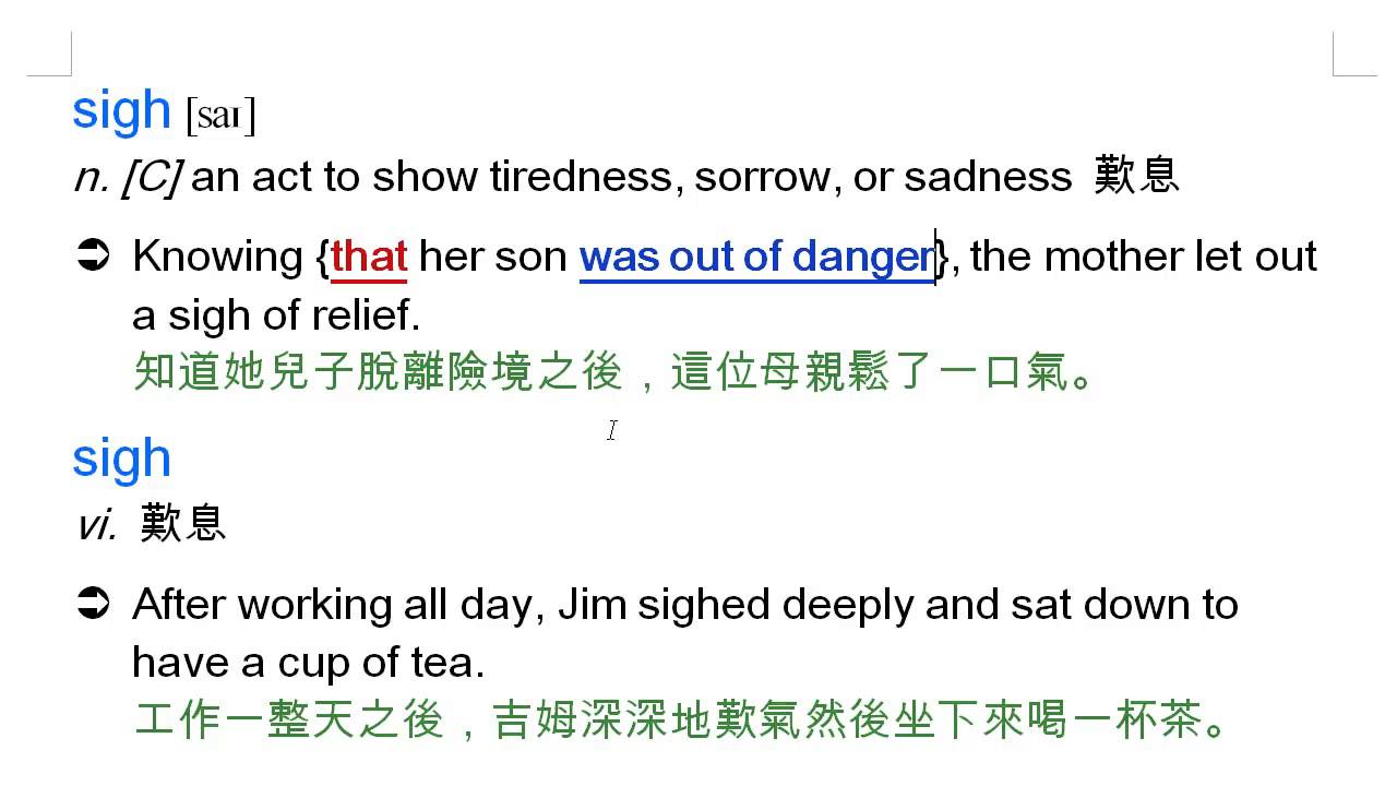 載入中... 相關課程 Back sigh: 嘆息, let out a sight of relief, 鬆了一口氣 相關課程 0 / 750 登入觀看 ⇐ Use this menu to view and help create subtitles for this video in many different languages. You'll probably want to hide YouTube's captions if using these subtitles. sigh: 嘆息, let out a sight of relief, 鬆了一口氣 上傳學習單 下載學習單