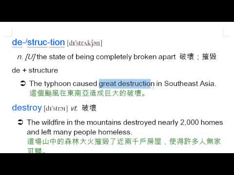 載入中... 相關課程 Back destruction 相關課程 0 / 750 登入觀看 ⇐ Use this menu to view and help create subtitles for this video in many different languages. You'll probably want to hide YouTube's captions if using these subtitles. destruction : destruction, 摧毀, 破壞, destroy, Troy, structure 上傳學習單 下載學習單