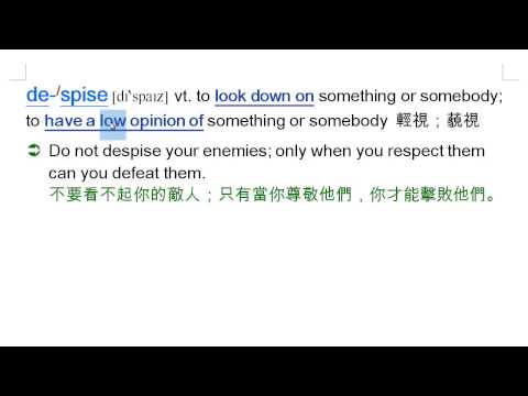載入中... 相關課程 Back despise: despise, 輕視;藐視;討厭, despite, 儘管 相關課程 0 / 750 登入觀看 ⇐ Use this menu to view and help create subtitles for this video in many different languages. You'll probably want to hide YouTube's captions if using these subtitles. despise: despise, 輕視;藐視;討厭, despite, 儘管 上傳學習單 下載學習單