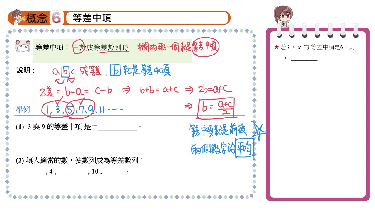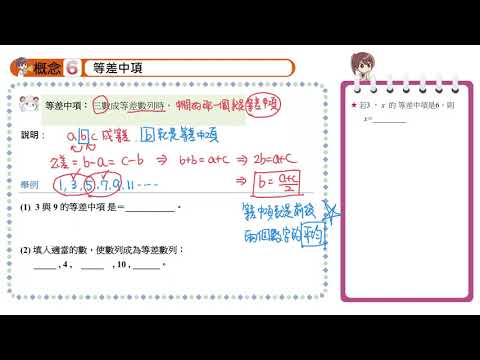 載入中... 相關課程 Back 【概念6】等差中項 相關課程 0 / 750 登入觀看 ⇐ Use this menu to view and help create subtitles for this video in many different languages. You'll probably want to hide YouTube's captions if using these subtitles. 【概念6】等差中項 上傳學習單 下載學習單