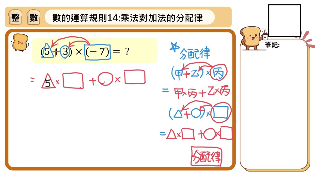 載入中... 相關課程 Back 051【數的運算規則 14】乘法對加法的分配律 相關課程 0 / 750 登入觀看 ⇐ Use this menu to view and help create subtitles for this video in many different languages. You'll probably want to hide YouTube's captions if using these subtitles. 051【數的運算規則 14】乘法對加法的分配律 上傳學習單 下載學習單