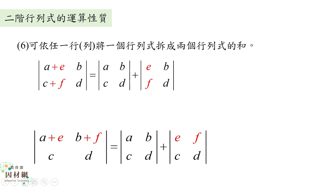 載入中... 相關課程 Back G-11A-6-S11_能理解兩階行列式的運算性質 相關課程 0 / 750 登入觀看 ⇐ Use this menu to view and help create subtitles for this video in many different languages. You'll probably want to hide YouTube's captions if using these subtitles. G-11A-6-S11_能理解兩階行列式的運算性質 上傳學習單 下載學習單