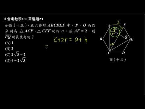 載入中... 相關課程 Back 【會考數學】105 單選23:正六邊形、內心 相關課程 0 / 750 登入觀看 ⇐ Use this menu to view and help create subtitles for this video in many different languages. You'll probably want to hide YouTube's captions if using these subtitles. 【會考數學】105 單選23:正六邊形、內心 上傳學習單 下載學習單