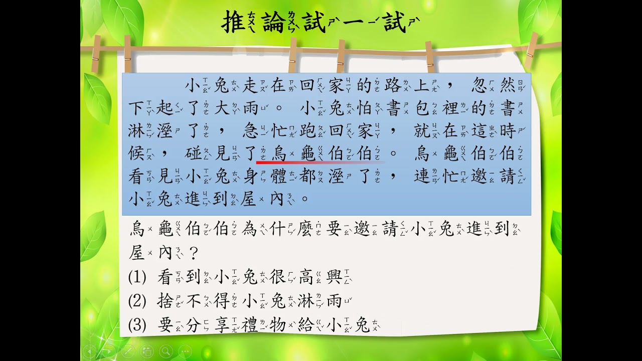 載入中... 相關課程 Back 推論理解[一]/段落狀態推論 相關課程 0 / 750 登入觀看 ⇐ Use this menu to view and help create subtitles for this video in many different languages. You'll probably want to hide YouTube's captions if using these subtitles. 推論理解[一]/段落狀態推論 上傳學習單 下載學習單