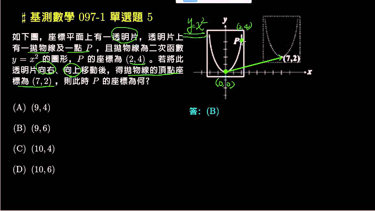 載入中... 相關課程 Back 【基測數學】97v1 單選05:二次函數的平移 相關課程 0 / 750 登入觀看 ⇐ Use this menu to view and help create subtitles for this video in many different languages. You'll probably want to hide YouTube's captions if using these subtitles. 【基測數學】97v1 單選05:二次函數的平移 上傳學習單 下載學習單