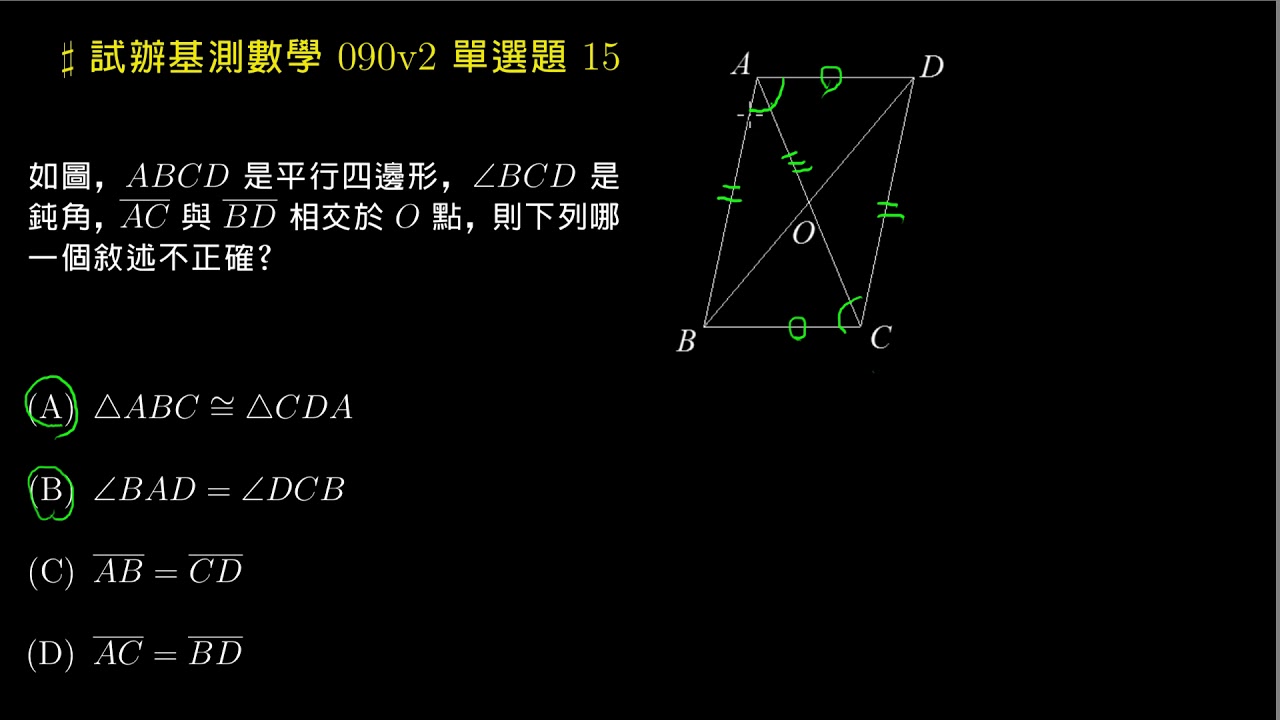 載入中... 相關課程 Back 【基測數學練習題本】90v2 單選15:平行四邊形的特性 相關課程 0 / 750 登入觀看 ⇐ Use this menu to view and help create subtitles for this video in many different languages. You'll probably want to hide YouTube's captions if using these subtitles. 【基測數學練習題本】90v2 單選15:平行四邊形的特性 上傳學習單 下載學習單