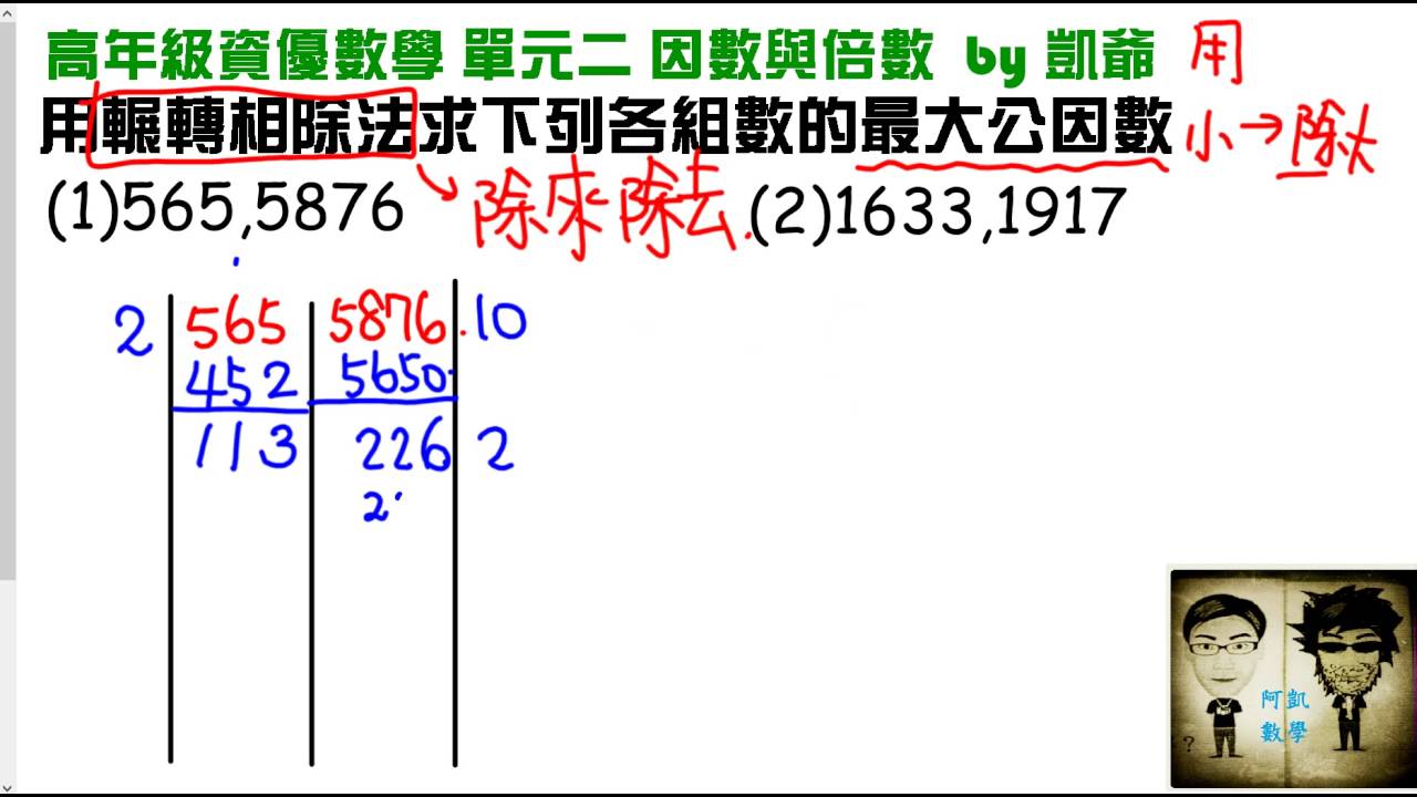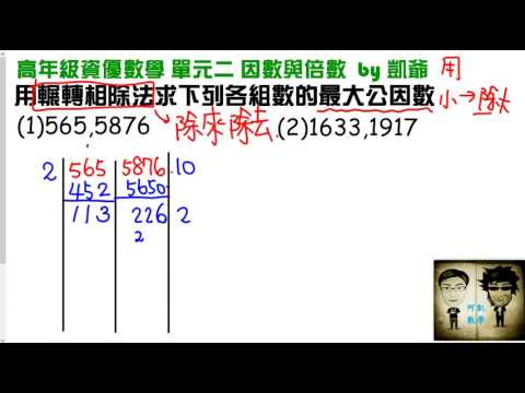 載入中... 相關課程 Back 影片29 輾轉相除法求最大公因數 相關課程 0 / 750 登入觀看 ⇐ Use this menu to view and help create subtitles for this video in many different languages. You'll probably want to hide YouTube's captions if using these subtitles. 影片29 輾轉相除法求最大公因數 上傳學習單 下載學習單