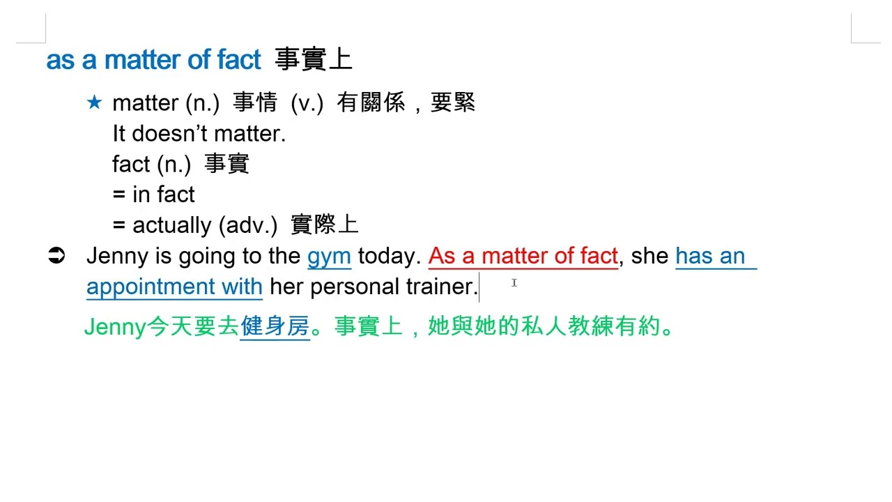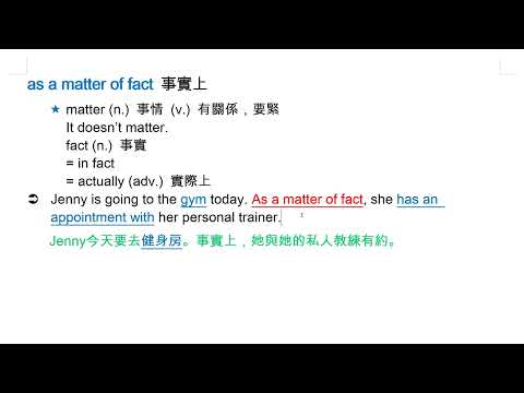 載入中... 相關課程 Back as a matter of fact 事實上 相關課程 0 / 750 登入觀看 ⇐ Use this menu to view and help create subtitles for this video in many different languages. You'll probably want to hide YouTube's captions if using these subtitles. as a matter of fact 事實上 上傳學習單 下載學習單