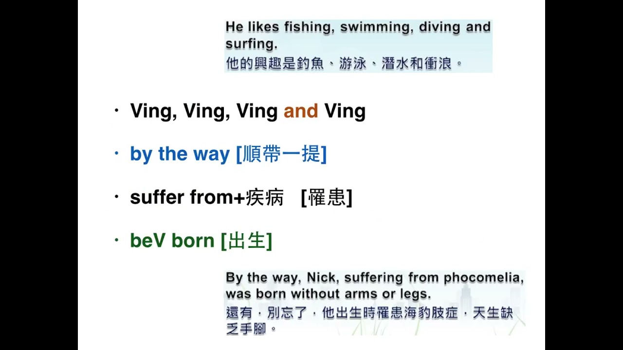 載入中... 相關課程 Back 主題閱讀:Life Without Limits 相關課程 0 / 750 登入觀看 ⇐ Use this menu to view and help create subtitles for this video in many different languages. You'll probably want to hide YouTube's captions if using these subtitles. 主題閱讀:Life Without Limits 上傳學習單 下載學習單