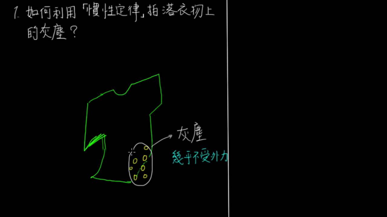 載入中... 相關課程 Back 3-2例題01應用慣性定律拍落衣物上的灰塵 相關課程 0 / 750 登入觀看 ⇐ Use this menu to view and help create subtitles for this video in many different languages. You'll probably want to hide YouTube's captions if using these subtitles. 3-2例題01應用慣性定律拍落衣物上的灰塵 上傳學習單 下載學習單