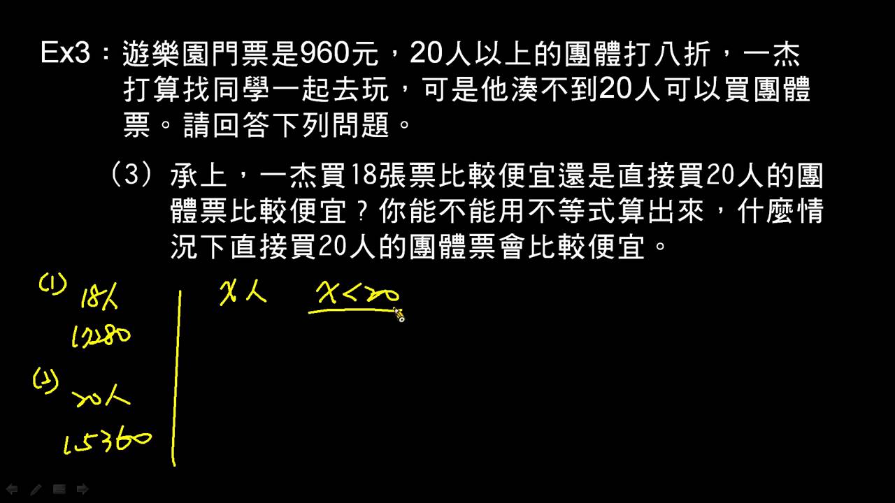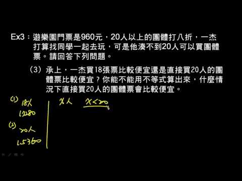 載入中... 相關課程 Back 【例題】一元一次不等式應用題 2 相關課程 0 / 750 登入觀看 ⇐ Use this menu to view and help create subtitles for this video in many different languages. You'll probably want to hide YouTube's captions if using these subtitles. 【例題】一元一次不等式應用題 2 上傳學習單 下載學習單