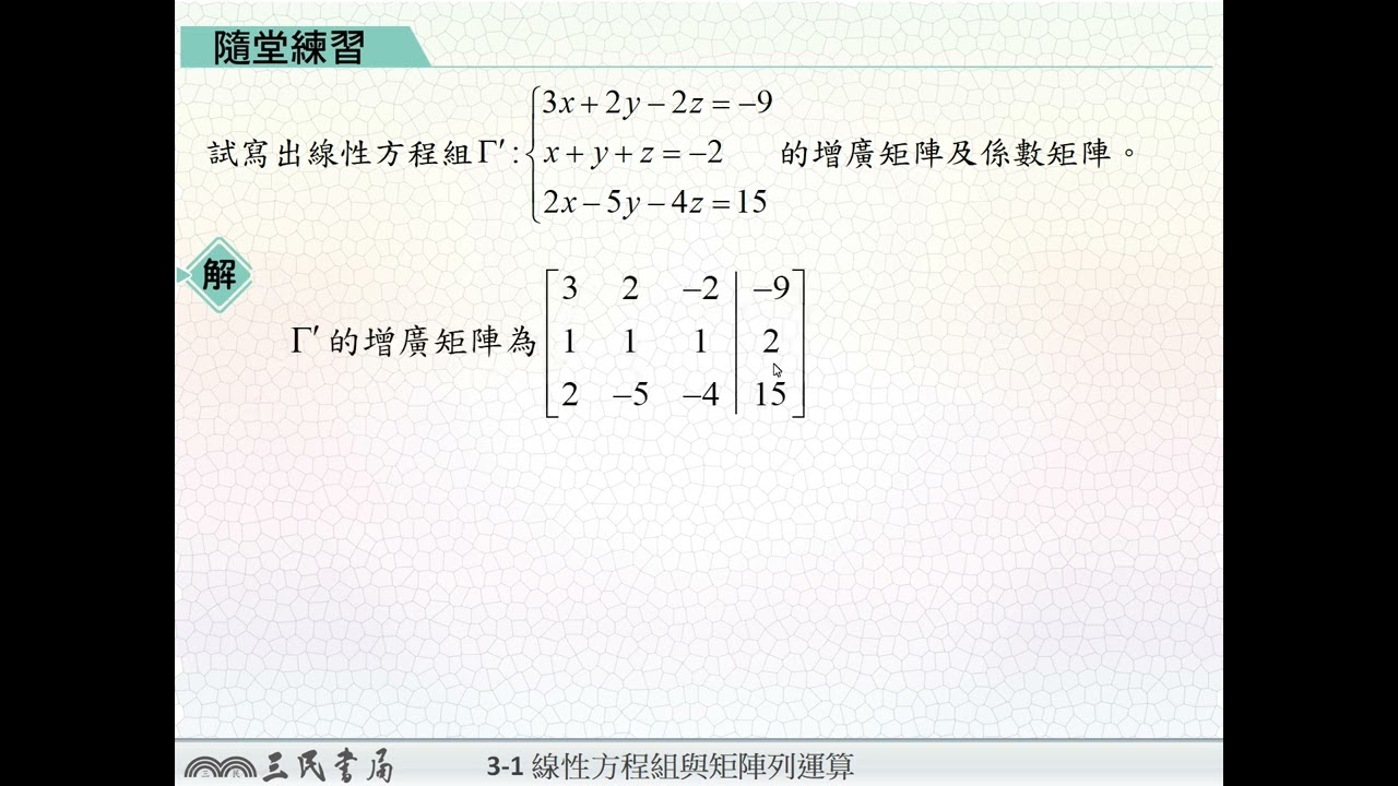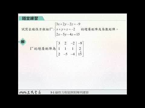 載入中... 相關課程 Back 【解題】增廣矩陣及係數矩陣 相關課程 0 / 750 登入觀看 ⇐ Use this menu to view and help create subtitles for this video in many different languages. You'll probably want to hide YouTube's captions if using these subtitles. 【解題】增廣矩陣及係數矩陣 上傳學習單 下載學習單