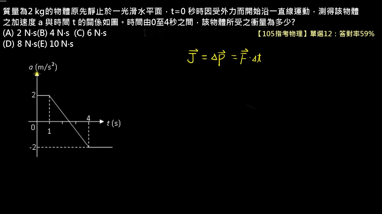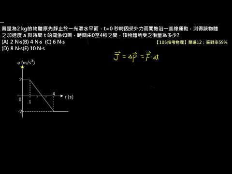 載入中... 相關課程 Back 【例題】【指考物理】105 單選12:a t圖求所受衝量 相關課程 0 / 750 登入觀看 ⇐ Use this menu to view and help create subtitles for this video in many different languages. You'll probably want to hide YouTube's captions if using these subtitles. 【例題】【指考物理】105 單選12:a t圖求所受衝量 上傳學習單 下載學習單