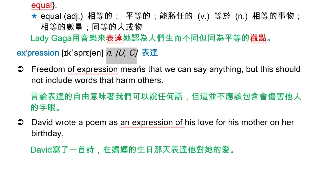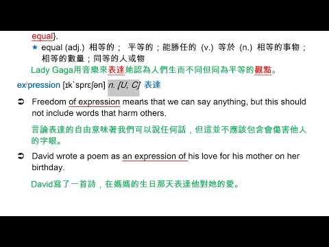 載入中... 相關課程 Back express [ɪk`sprɛs] vt. 表達 相關課程 0 / 750 登入觀看 ⇐ Use this menu to view and help create subtitles for this video in many different languages. You'll probably want to hide YouTube's captions if using these subtitles. express [ɪk`sprɛs] vt. 表達 上傳學習單 下載學習單