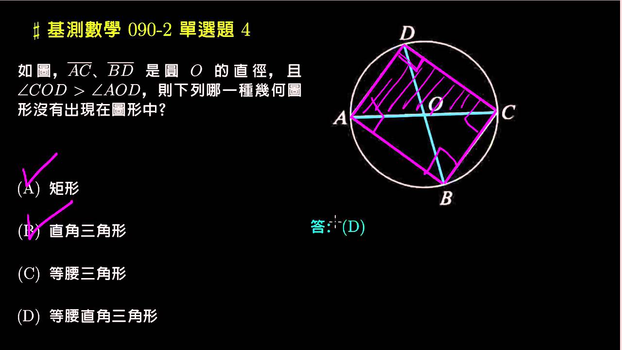 載入中... 相關課程 Back 【基測數學】90v2 單選04:半圓的圓周角=90度 相關課程 0 / 750 登入觀看 ⇐ Use this menu to view and help create subtitles for this video in many different languages. You'll probably want to hide YouTube's captions if using these subtitles. 【基測數學】90v2 單選04:半圓的圓周角=90度 上傳學習單 下載學習單