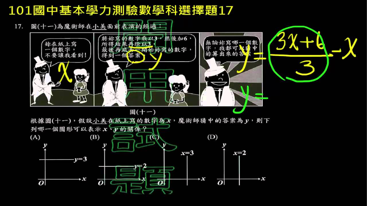載入中... 相關課程 Back 【基測數學】101 單選17:魔術與函數圖 相關課程 0 / 750 登入觀看 ⇐ Use this menu to view and help create subtitles for this video in many different languages. You'll probably want to hide YouTube's captions if using these subtitles. 【基測數學】101 單選17:魔術與函數圖 上傳學習單 下載學習單