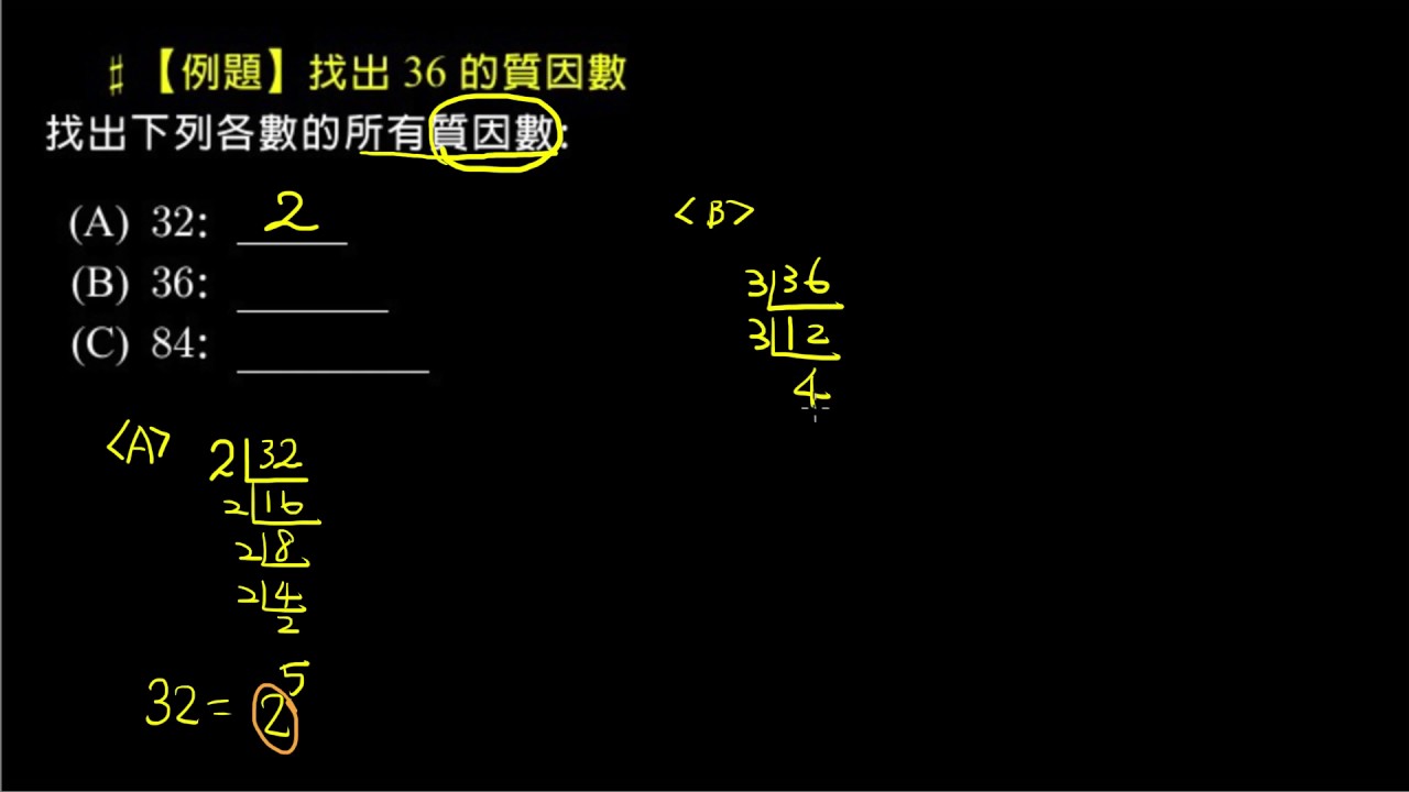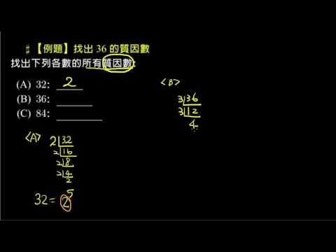 Back 【例題】列出質因數 相關課程 0 / 750 登入觀看 ⇐ Use this menu to view and help create subtitles for this video in many different languages. You'll probably want to hide YouTube's captions if using these subtitles. 【例題】列出質因數 上傳學習單 下載學習單