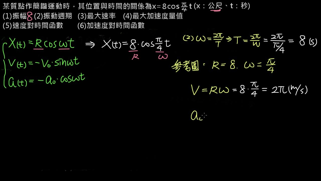 載入中... 相關課程 Back 【例題】簡諧練習:位置對時間函數 相關課程 0 / 750 登入觀看 ⇐ Use this menu to view and help create subtitles for this video in many different languages. You'll probably want to hide YouTube's captions if using these subtitles. 【例題】簡諧練習:位置對時間函數 上傳學習單 下載學習單