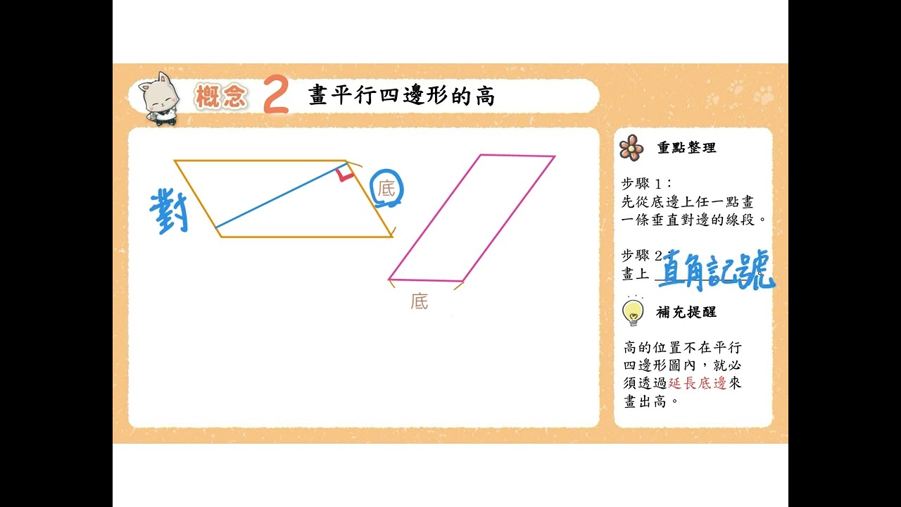 載入中... 相關課程 Back 五上 單元9 04 概念2 畫平行四邊形的高 相關課程 0 / 750 登入觀看 ⇐ Use this menu to view and help create subtitles for this video in many different languages. You'll probably want to hide YouTube's captions if using these subtitles. 五上 單元9 04 概念2 畫平行四邊形的高 上傳學習單 下載學習單