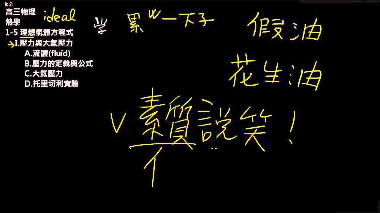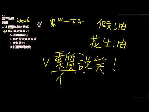 載入中... 相關課程 Back 高三上物理1-5理想氣體方程式(2):流體壓力與大氣壓力 相關課程 0 / 750 登入觀看 ⇐ Use this menu to view and help create subtitles for this video in many different languages. You'll probably want to hide YouTube's captions if using these subtitles. 高三上物理1-5理想氣體方程式(2):流體壓力與大氣壓力 : 流體壓力與大氣壓力 上傳學習單 下載學習單