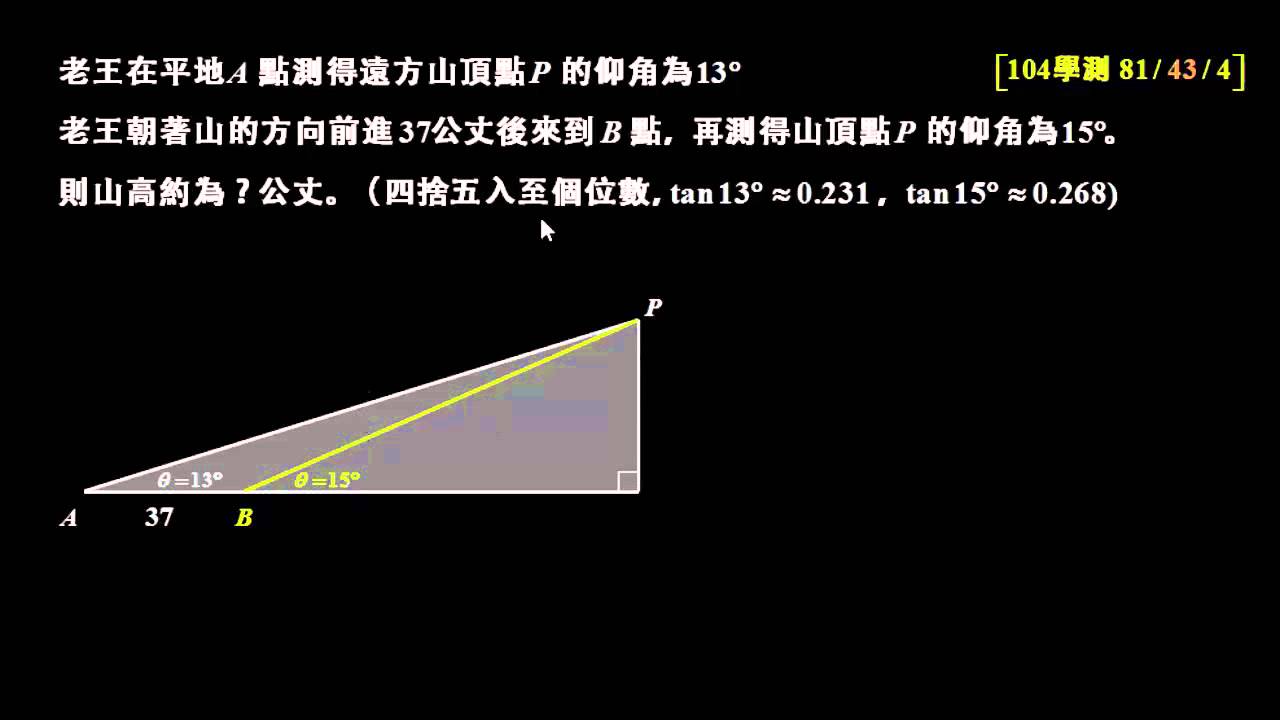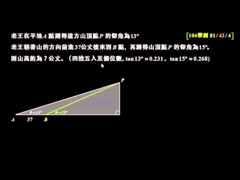 載入中... 相關課程 Back 學測數學104 填A:利用tan求山高 相關課程 0 / 750 登入觀看 ⇐ Use this menu to view and help create subtitles for this video in many different languages. You'll probably want to hide YouTube's captions if using these subtitles. 學測數學104 填A:利用tan求山高 上傳學習單 下載學習單