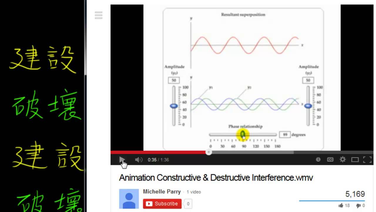 載入中... 相關課程 Back 高三上物理2-3波的疊加原理(3):建設性干涉與破壞性干涉發生的條件 相關課程 0 / 750 登入觀看 ⇐ Use this menu to view and help create subtitles for this video in many different languages. You'll probably want to hide YouTube's captions if using these subtitles. 高三上物理2-3波的疊加原理(3):建設性干涉與破壞性干涉發生的條件 上傳學習單 下載學習單