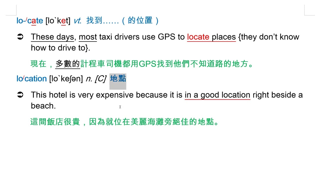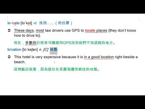 載入中... 相關課程 Back locate [lo`ket] vt. 找到……(的位置) 相關課程 0 / 750 登入觀看 ⇐ Use this menu to view and help create subtitles for this video in many different languages. You'll probably want to hide YouTube's captions if using these subtitles. locate [lo`ket] vt. 找到……(的位置) 上傳學習單 下載學習單