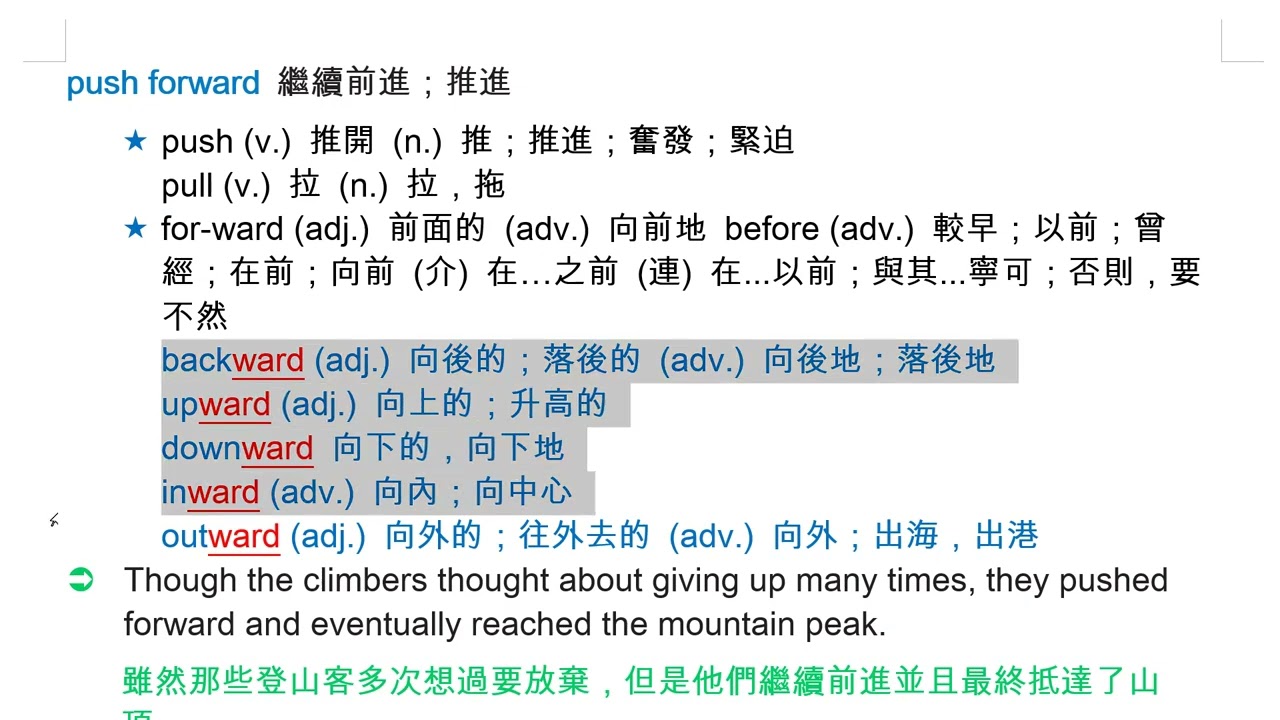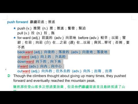 載入中... 相關課程 Back push forward 繼續前進;推進 相關課程 0 / 750 登入觀看 ⇐ Use this menu to view and help create subtitles for this video in many different languages. You'll probably want to hide YouTube's captions if using these subtitles. push forward 繼續前進;推進 上傳學習單 下載學習單
