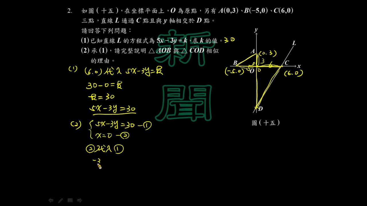 載入中... 相關課程 Back 【會考數學】106 非選02:直線方程與相似 相關課程 0 / 750 登入觀看 ⇐ Use this menu to view and help create subtitles for this video in many different languages. You'll probably want to hide YouTube's captions if using these subtitles. 【會考數學】106 非選02:直線方程與相似 上傳學習單 下載學習單