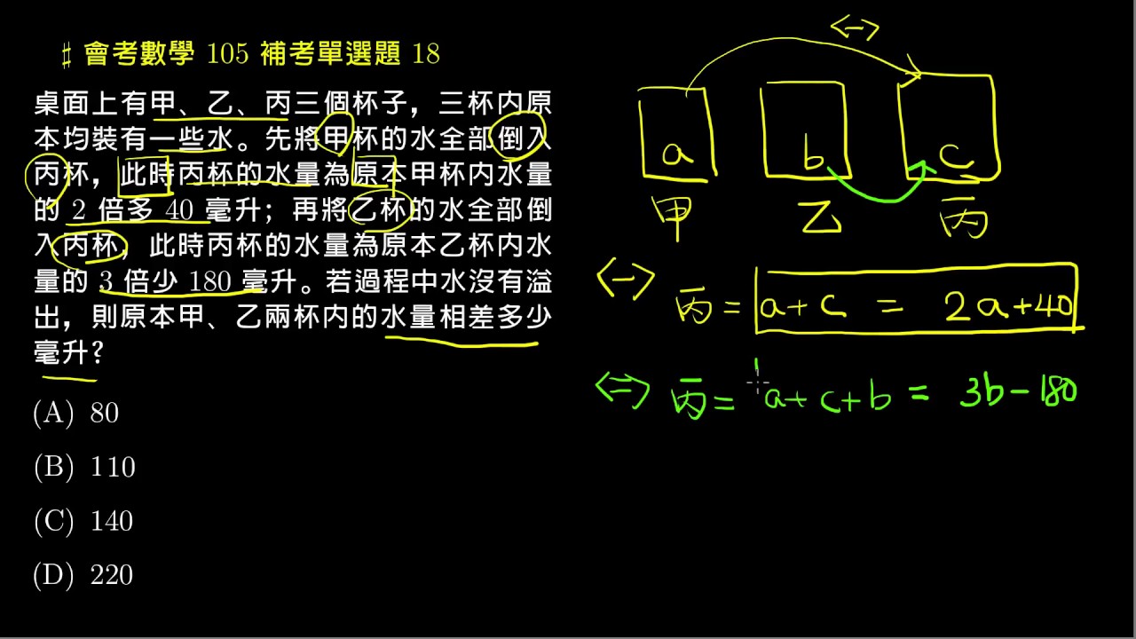 載入中... 相關課程 Back 【會考數學】105補考 單選18:應用問題 相關課程 0 / 750 登入觀看 ⇐ Use this menu to view and help create subtitles for this video in many different languages. You'll probably want to hide YouTube's captions if using these subtitles. 【會考數學】105補考 單選18:應用問題 上傳學習單 下載學習單