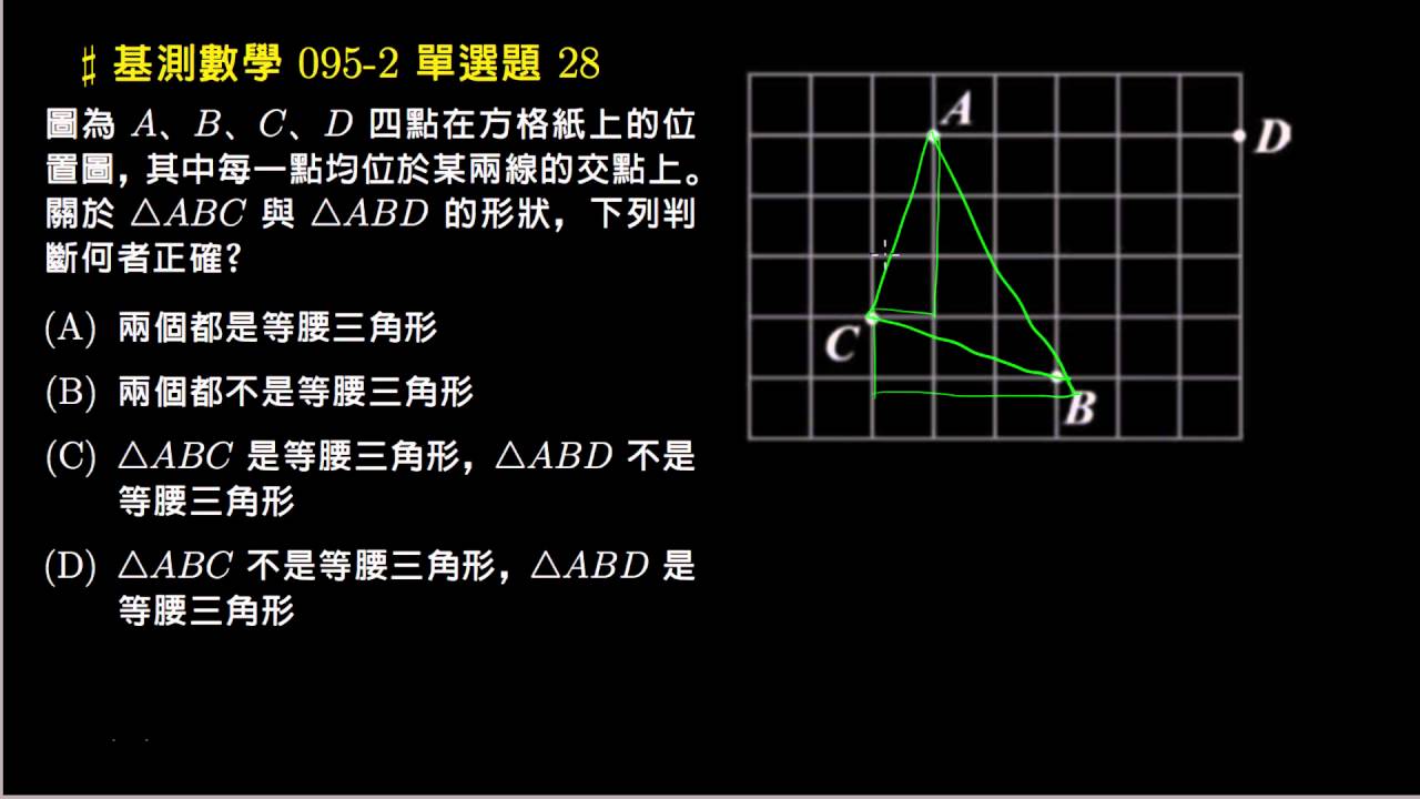 載入中... 相關課程 Back 【基測數學】95v2 單選28:方格紙、等腰三角 相關課程 0 / 750 登入觀看 ⇐ Use this menu to view and help create subtitles for this video in many different languages. You'll probably want to hide YouTube's captions if using these subtitles. 【基測數學】95v2 單選28:方格紙、等腰三角 上傳學習單 下載學習單