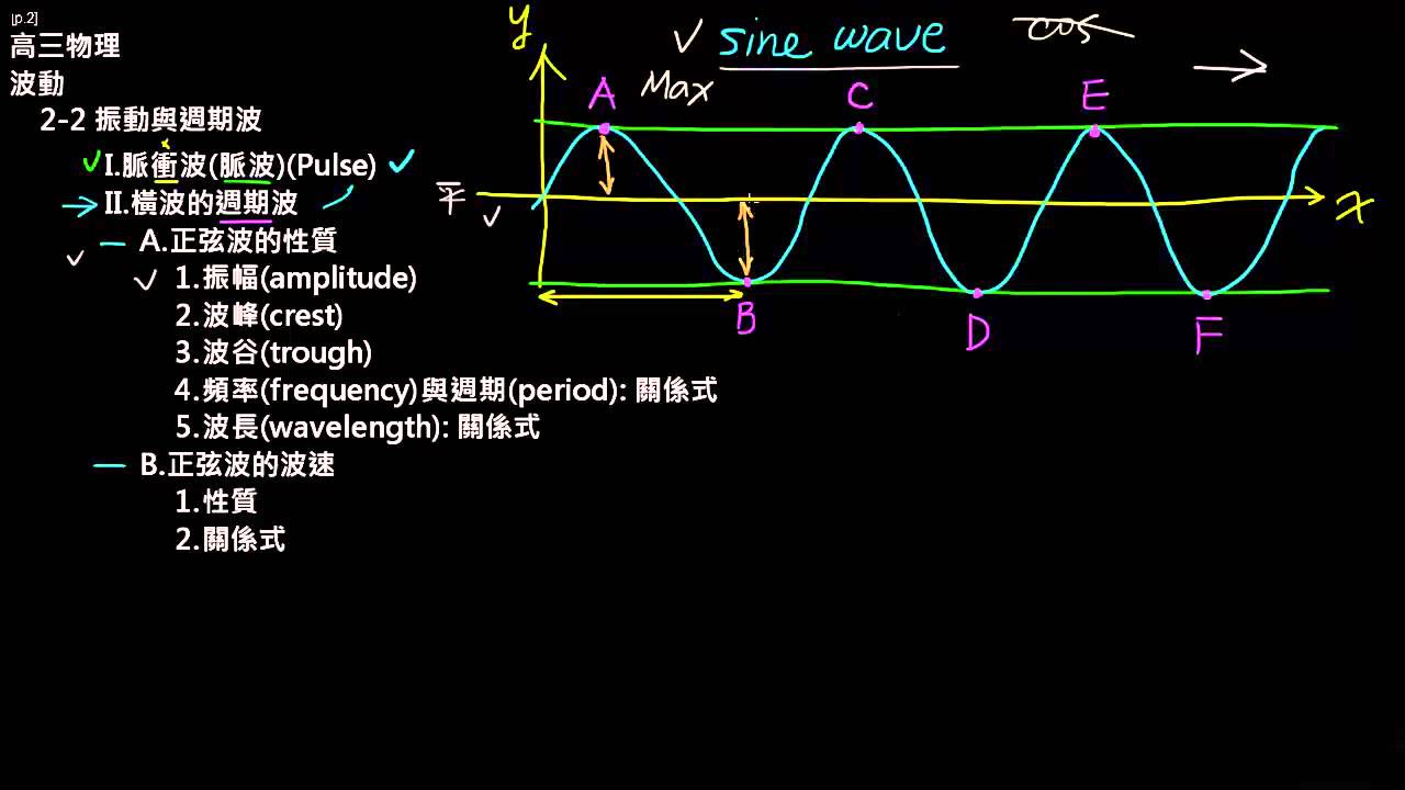 載入中... 相關課程 Back 高三上物理2-2振動與週期波(3):振幅、波峰、波谷、頻率、週期、波長 相關課程 0 / 750 登入觀看 ⇐ Use this menu to view and help create subtitles for this video in many different languages. You'll probably want to hide YouTube's captions if using these subtitles. 高三上物理2-2振動與週期波(3):振幅、波峰、波谷、頻率、週期、波長 上傳學習單 下載學習單