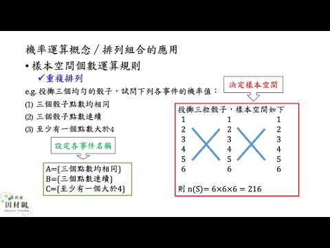載入中... 相關課程 Back D-10-4-S04_能將排列組合公式應用在事件與樣本空間個數的計算上,並能產生對應的機率 相關課程 0 / 750 登入觀看 ⇐ Use this menu to view and help create subtitles for this video in many different languages. You'll probably want to hide YouTube's captions if using these subtitles. D-10-4-S04_能將排列組合公式應用在事件與樣本空間個數的計算上,並能產生對應的機率 上傳學習單 下載學習單