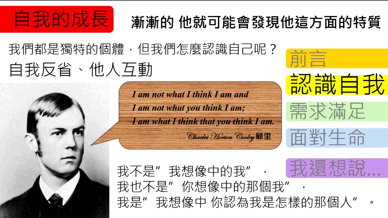 載入中... 相關課程 Back 【觀念】認識自我、鏡中自我、多元智慧 相關課程 0 / 750 登入觀看 ⇐ Use this menu to view and help create subtitles for this video in many different languages. You'll probably want to hide YouTube's captions if using these subtitles. 【觀念】認識自我、鏡中自我、多元智慧 上傳學習單 下載學習單
